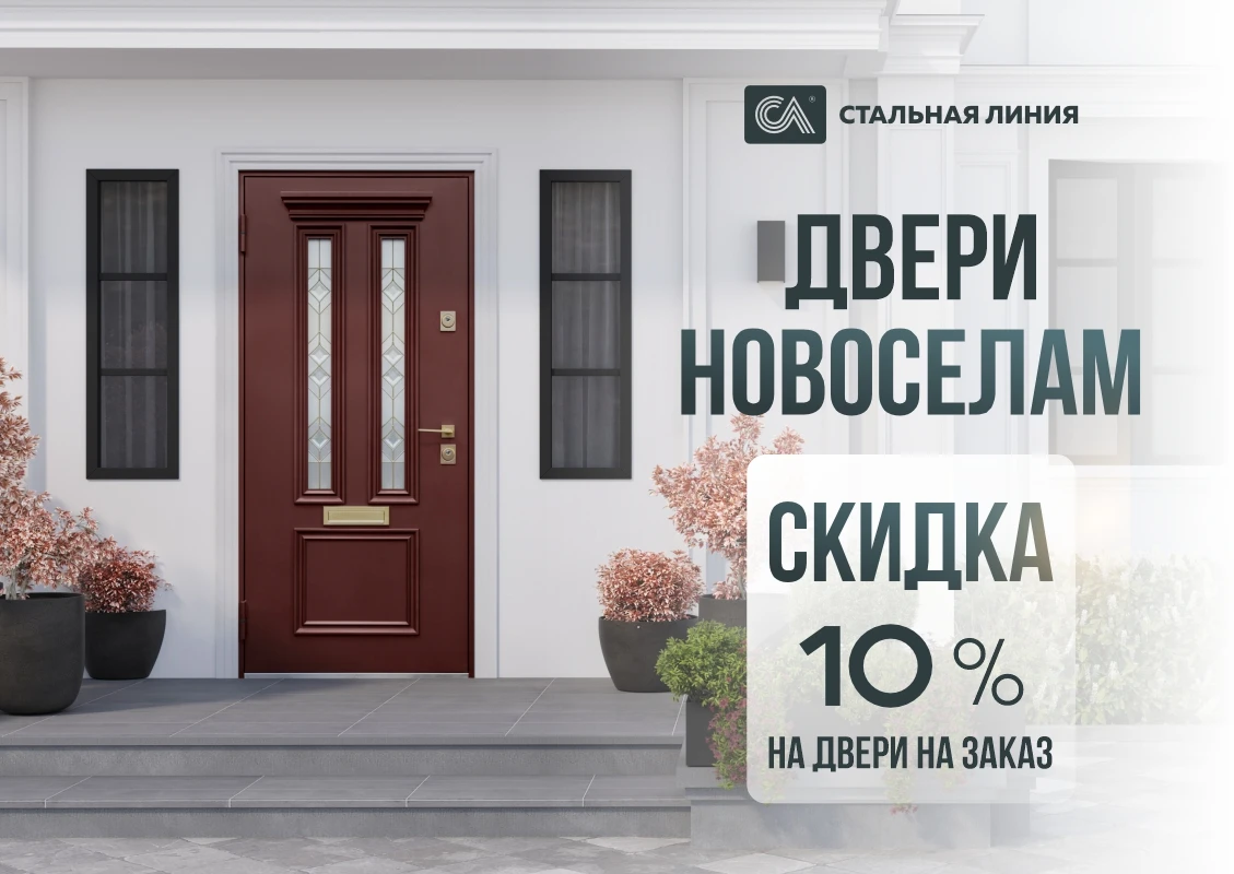 Внимание «Новоселам», с 20.09.2025 по 05.10.25 предоставляется скидка 10% на все модели дверей по индивидуальному заказу при предъявлении выписки из ЕГРН в отношении недвижимого имущества (жилое помещение или земельный участок), приобретенного в течение последних двух лет.