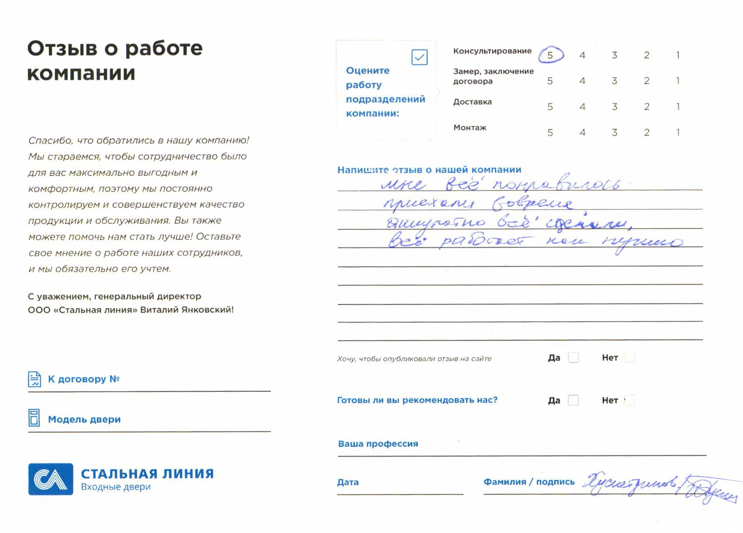 Отзыв от