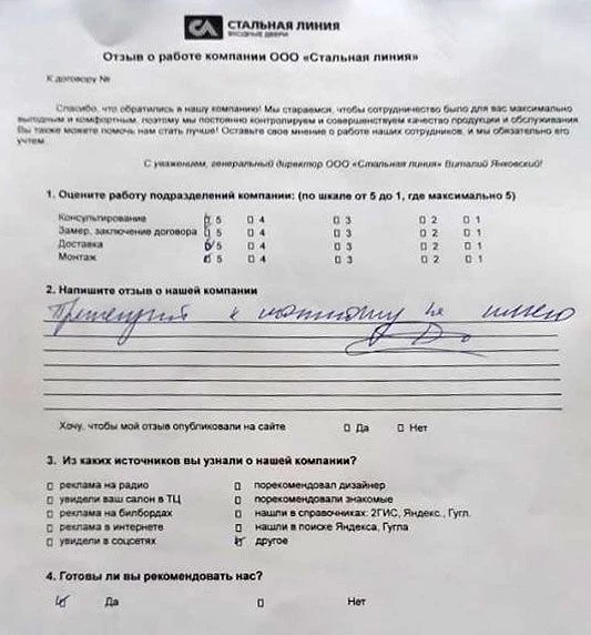 Отзыв нашего покупателя