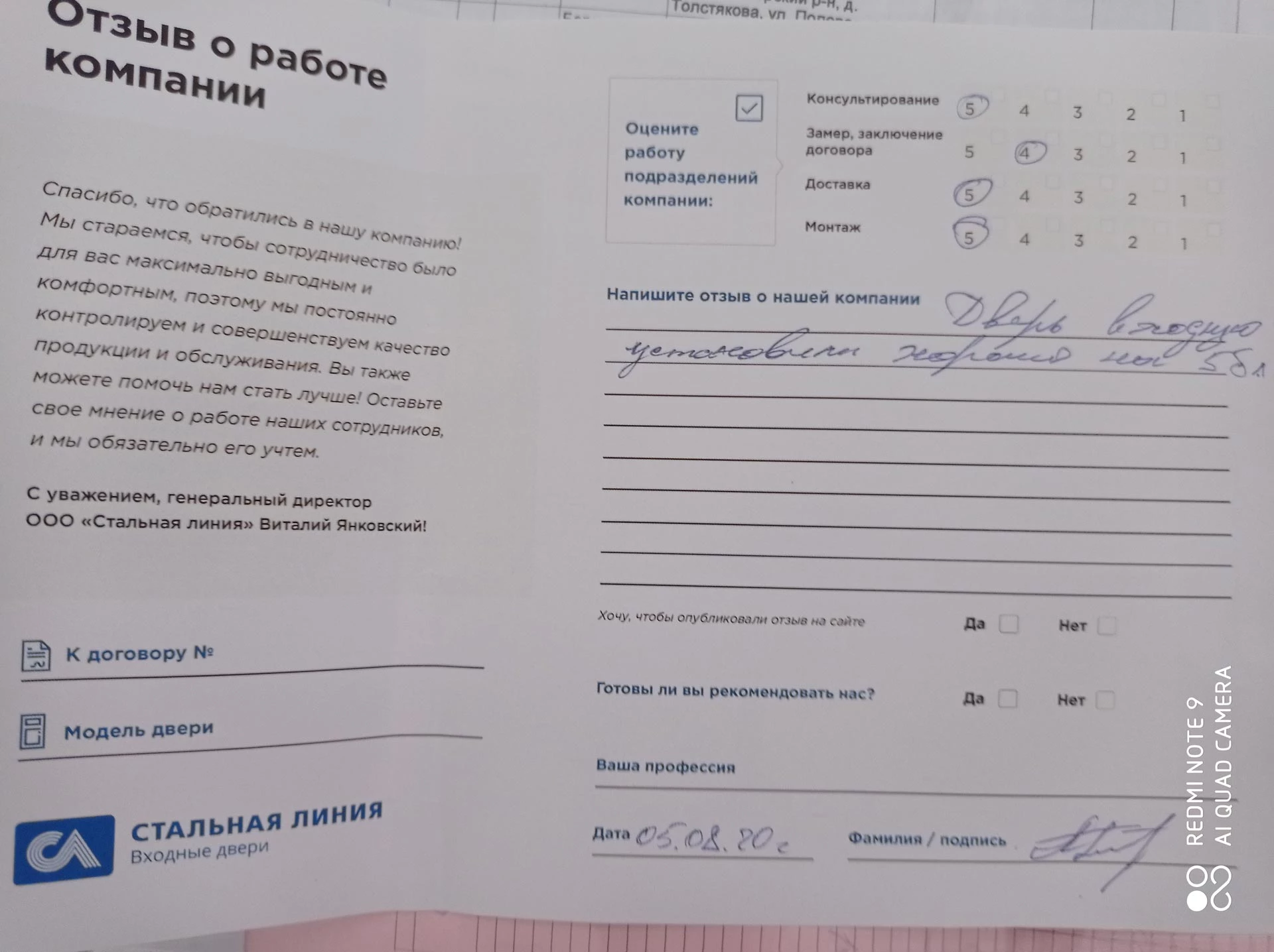 Спасибо СЛ за хорошую дверь! Отдельная благодарность бригаде установщиков!!!